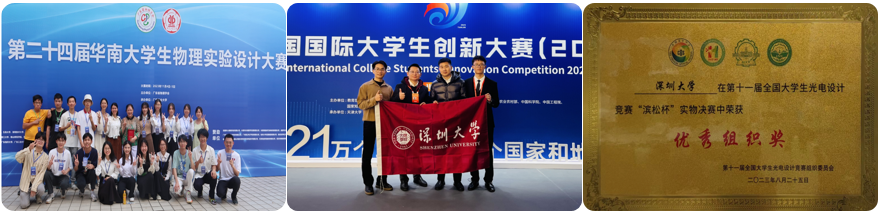3)全国大学生物理实验竞赛/第二十三届华南大学生物理实验设计大赛,国赛一等奖1项,二等奖3项,优秀奖1项。省一等奖2项,二等奖3项,三等奖1项;