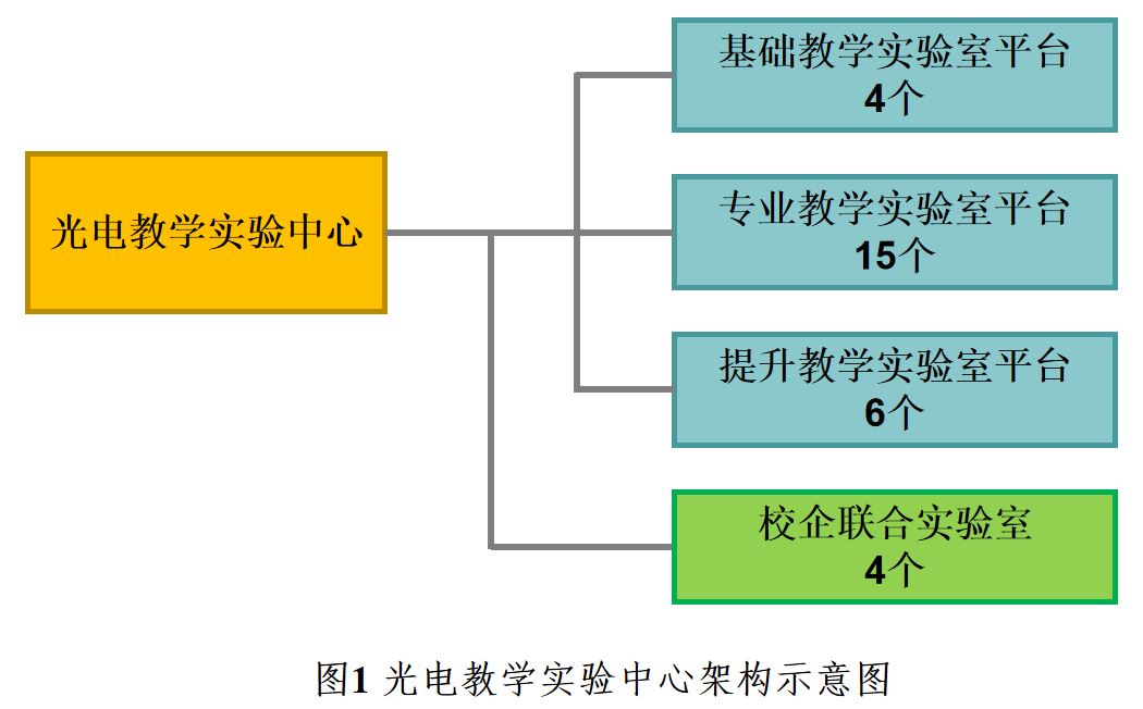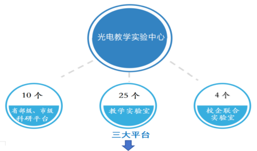 光电教学实验中心成立于2007年,位于深圳大学沧海校区致原楼,隶属于深圳大学物理与光电工程学院。学院现有光学工程一级学科硕士点、一级学科博士点以及博士后流动站,已形成本科-硕士-博士-博士后流动站的完整人才培养体系。光电教学实验中心依托深圳大学光电学科,主要服务于光电信息科学与工程、测控技术与仪器两个本科专业。这些年,我院光电学科发展迅猛,得到了教育部门和社会的广泛认可。光学工程在2012年获评“广东省攀峰重点学科”,2015年入选广东省高水平大学重点建设学科,并在2016年第四轮教育部学科评估中获评B+(并列排名全国第九),光电信息科学与工程专业已成为广东省特色专业。在学校的大力支持下,和在全院师生的共同努力下,光电教学实验中心得到飞速的发展,实验资源和实验空间都得到了大幅的提升。目前教学实验中心占地面积约3000平方米,配备齐全,设备先进,很好地服务于我院的本科生,对培养学生的实践动手能力和创新能力起到了至关重要的作用。教学实验中心一共设有3个实验教学平台、4个校企联合实验室,如图1所示: